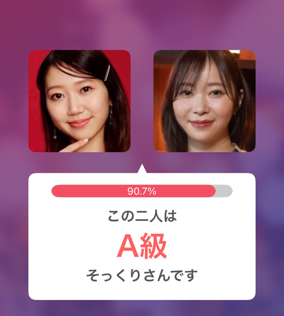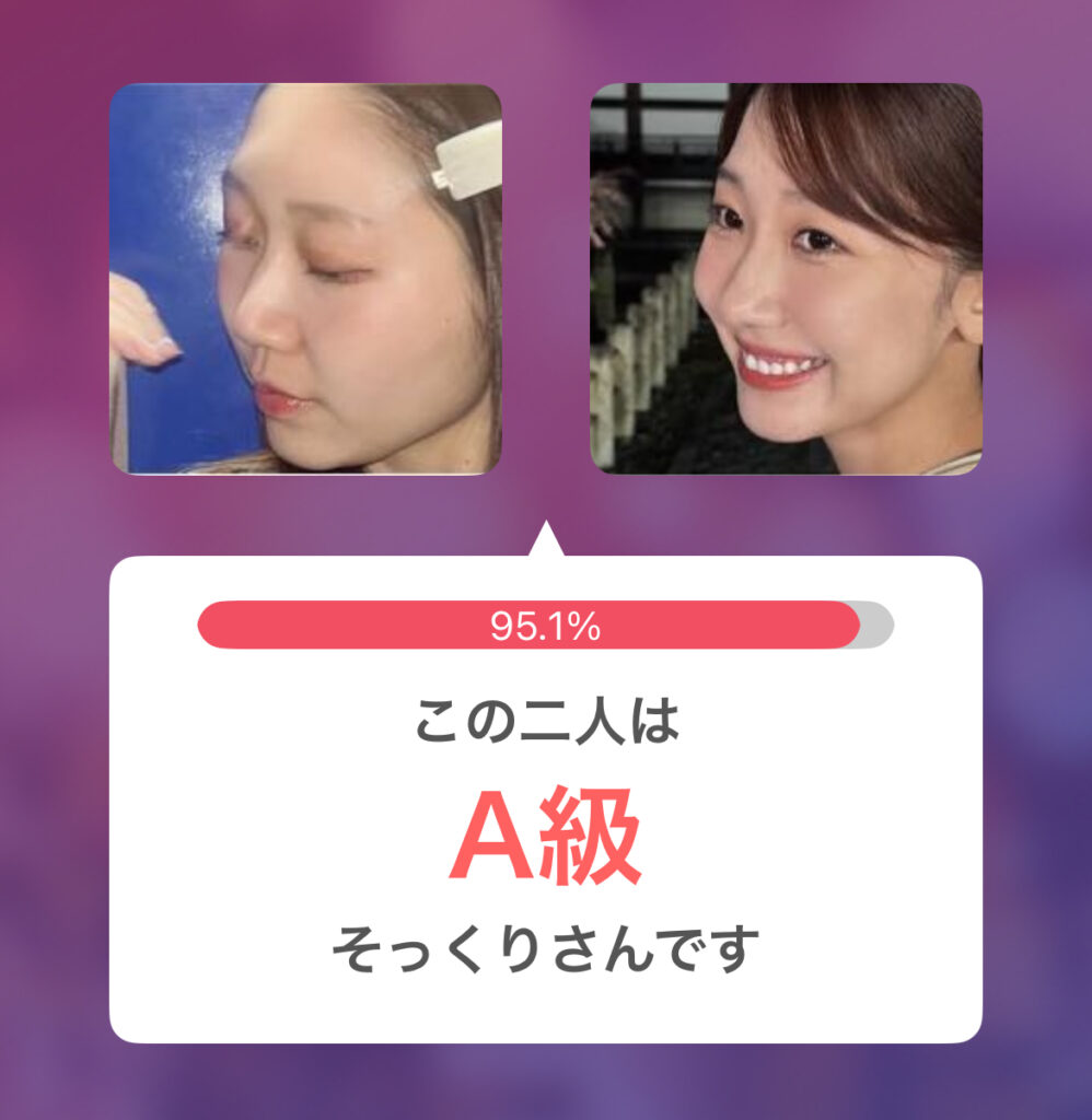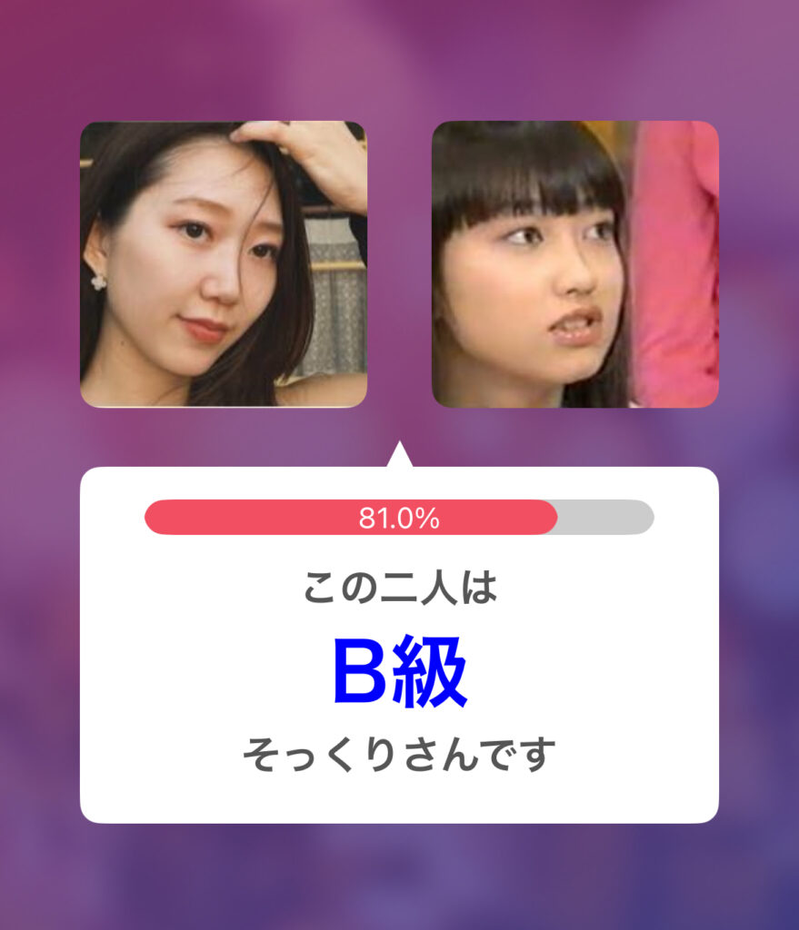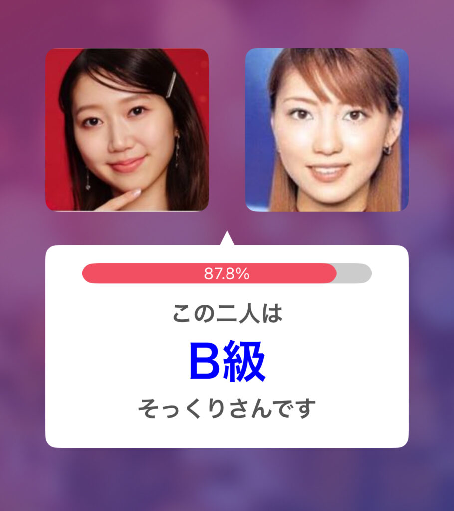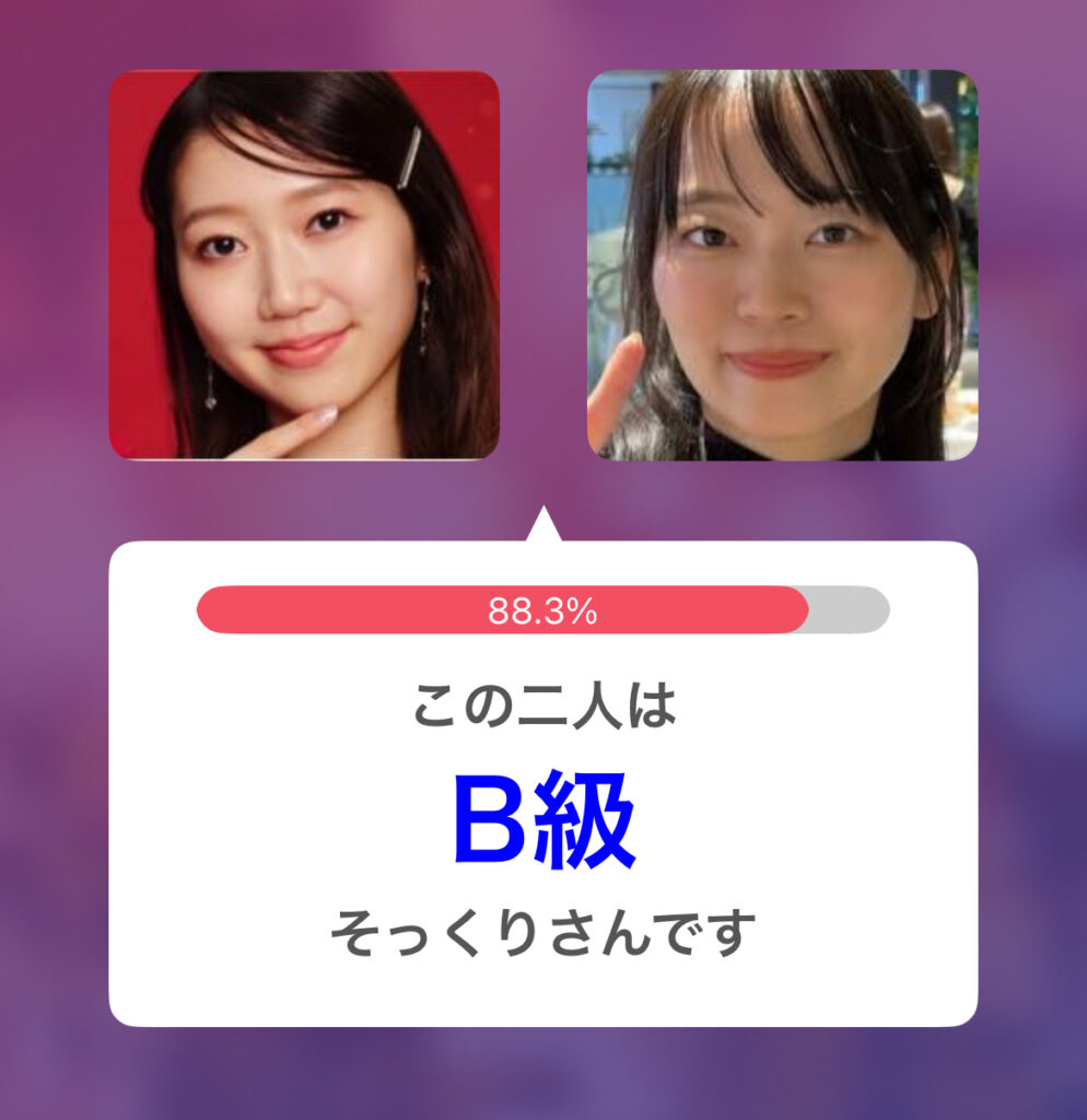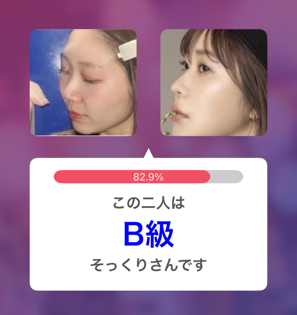 ただ、本当に似ていない人はC判定が出るのでB判定で80%以上は似ている方だと思われます。