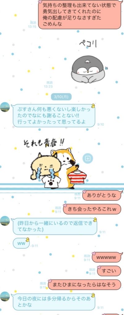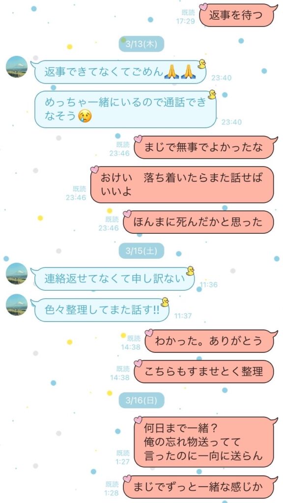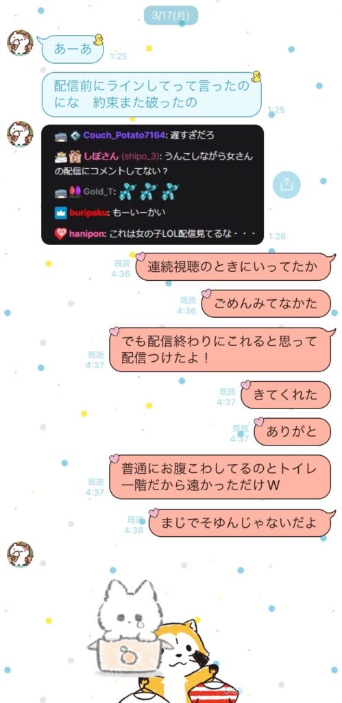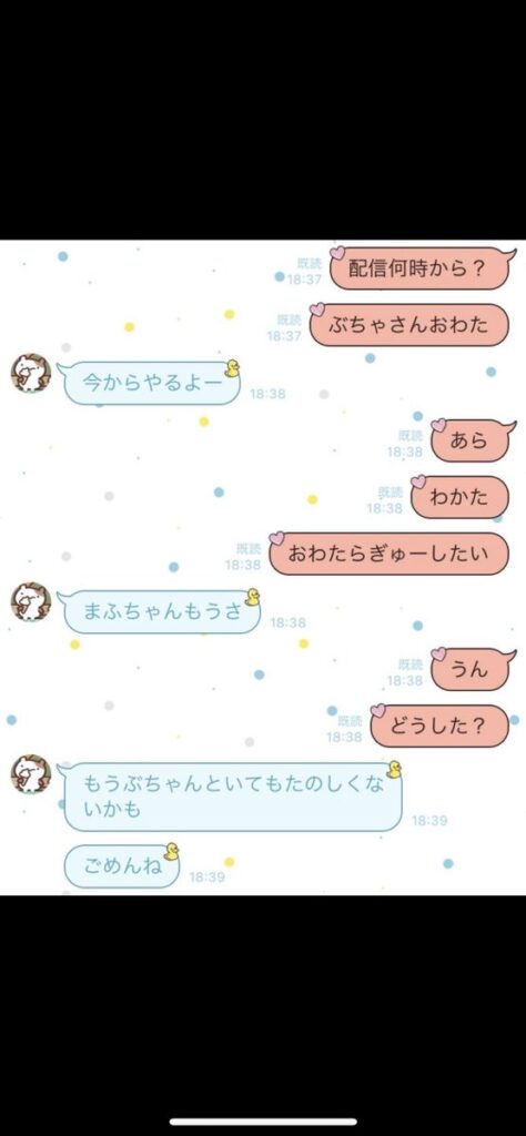 数日間一緒に過ごさない生活が続いたので、流石に良くないなと思ってLINEを送る視聴者男性との関係が進んでいたからか露骨に態度に変化が出始めたように思う