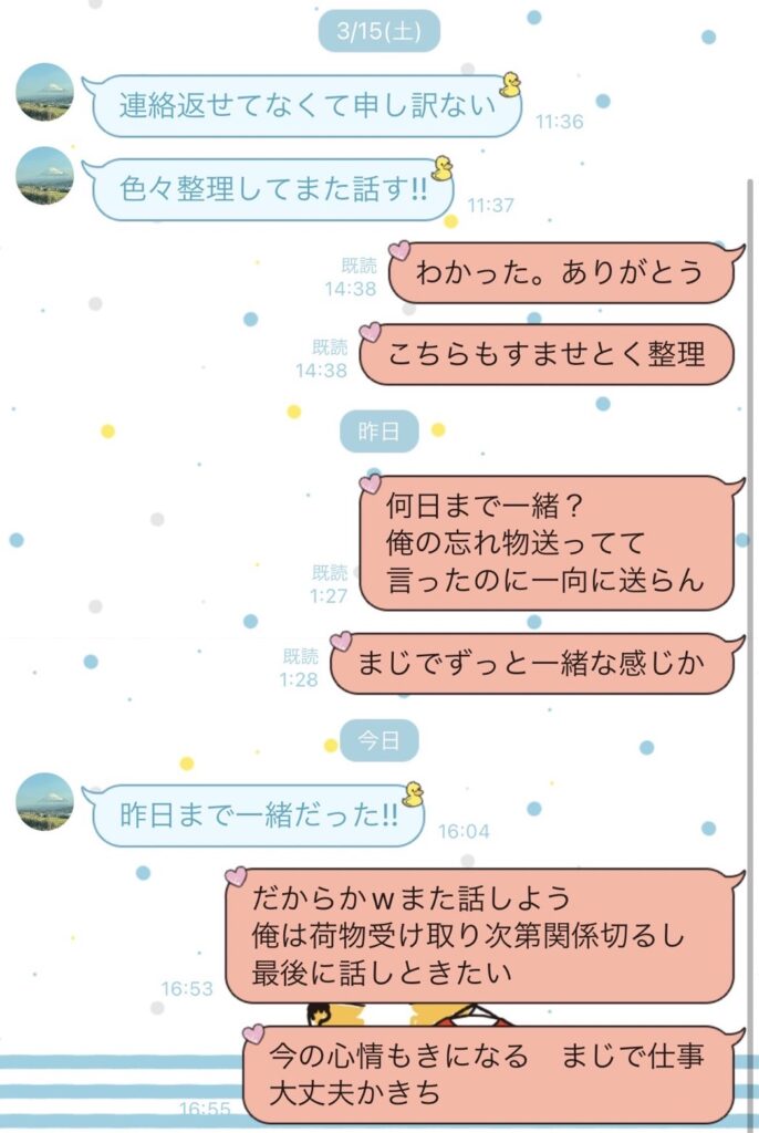 恋人関係は解消(以前からこういうやり取りは何度もあったのでそこまで大きく考えていなかった)