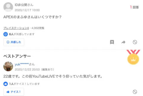 2020年12月22日時点で22歳だと配信でまふゆさんが言っていたという噂があります。